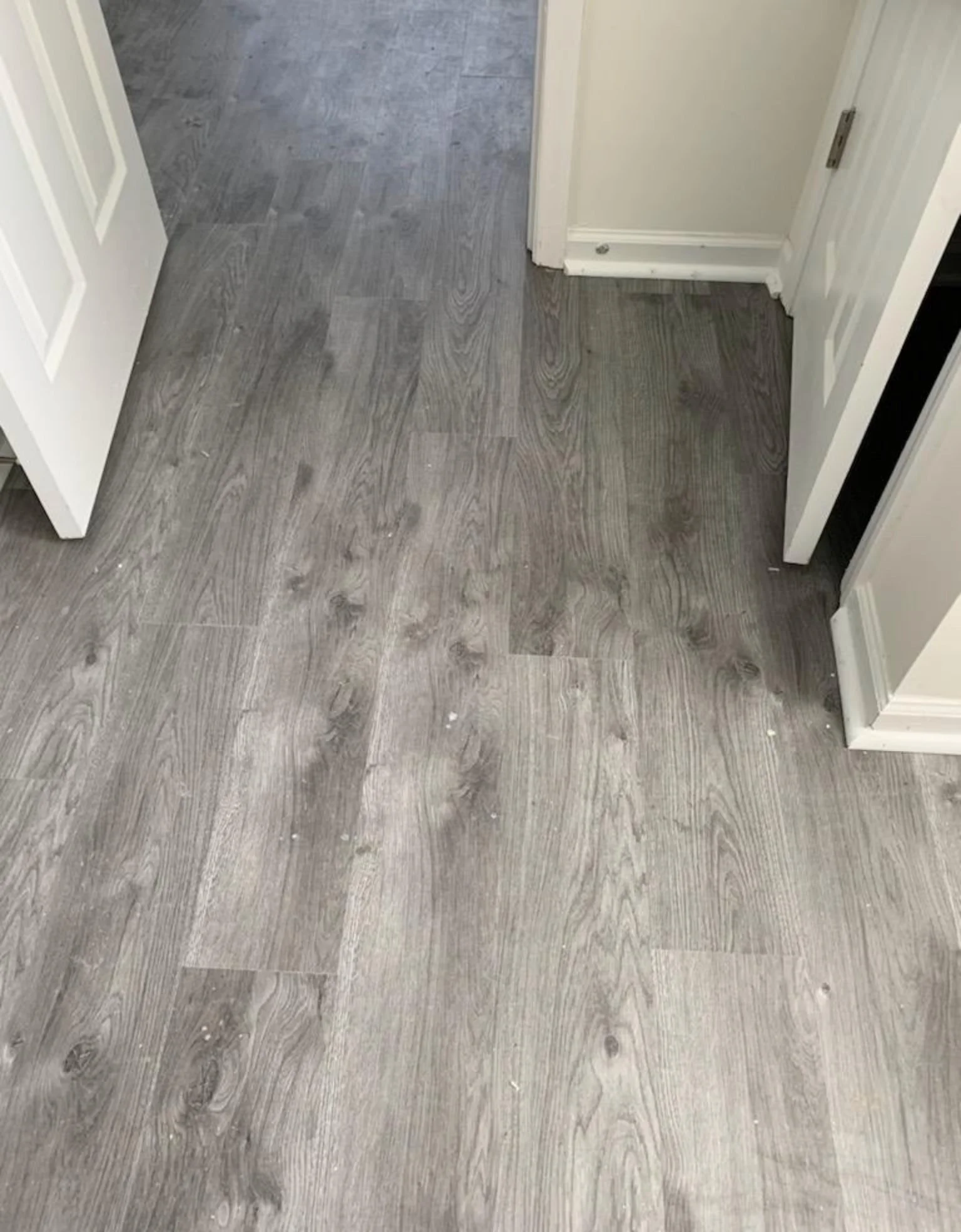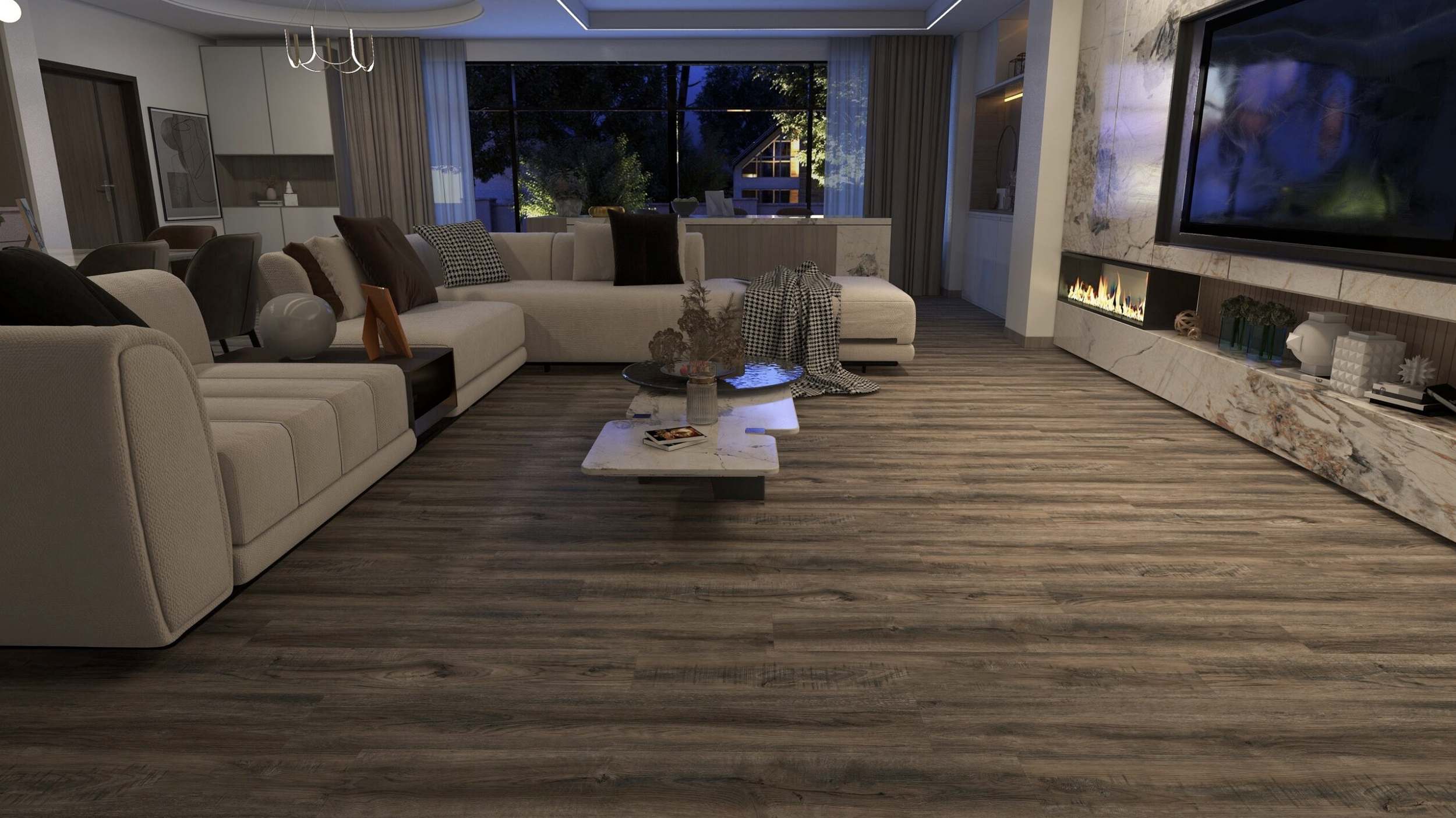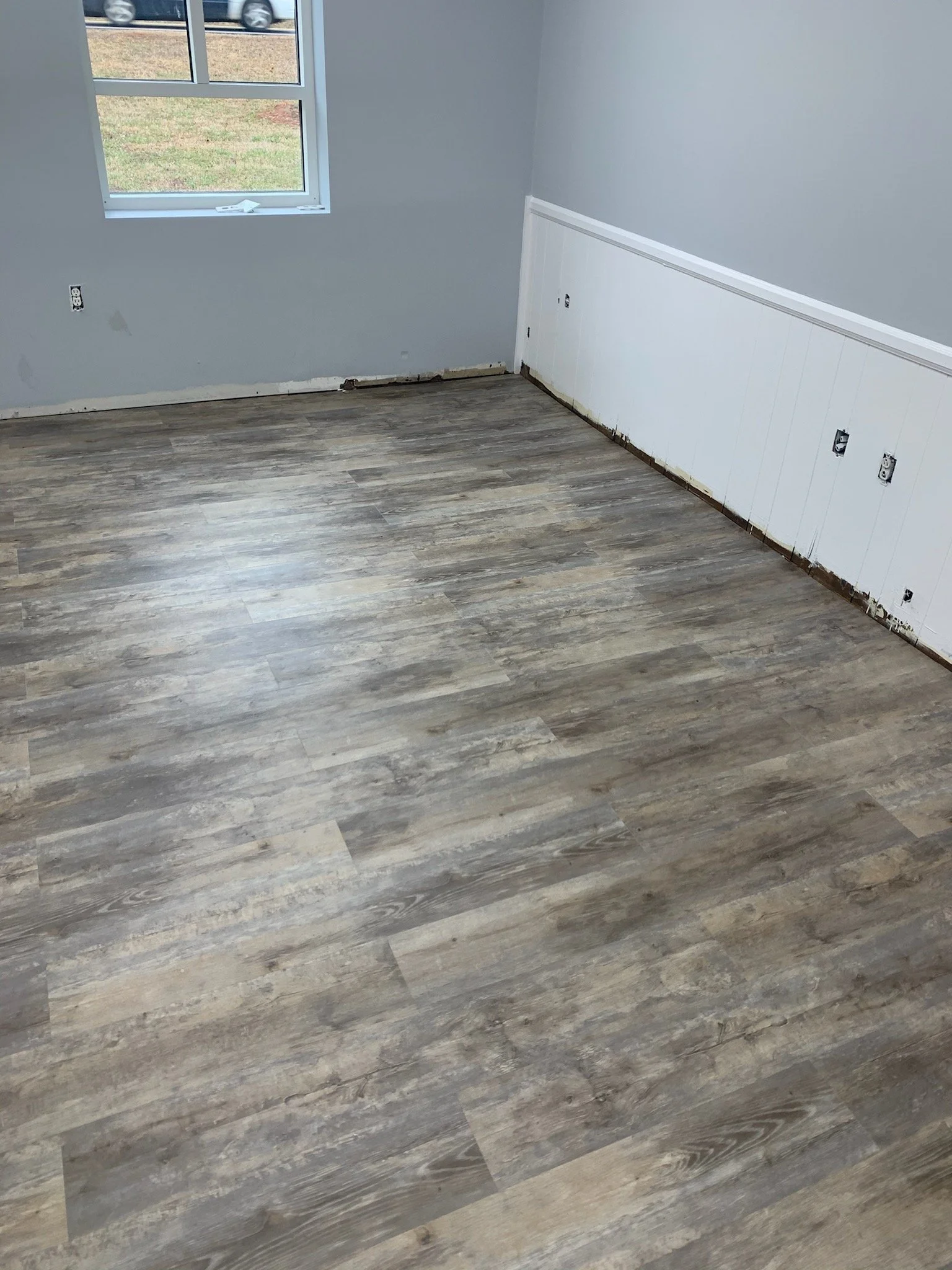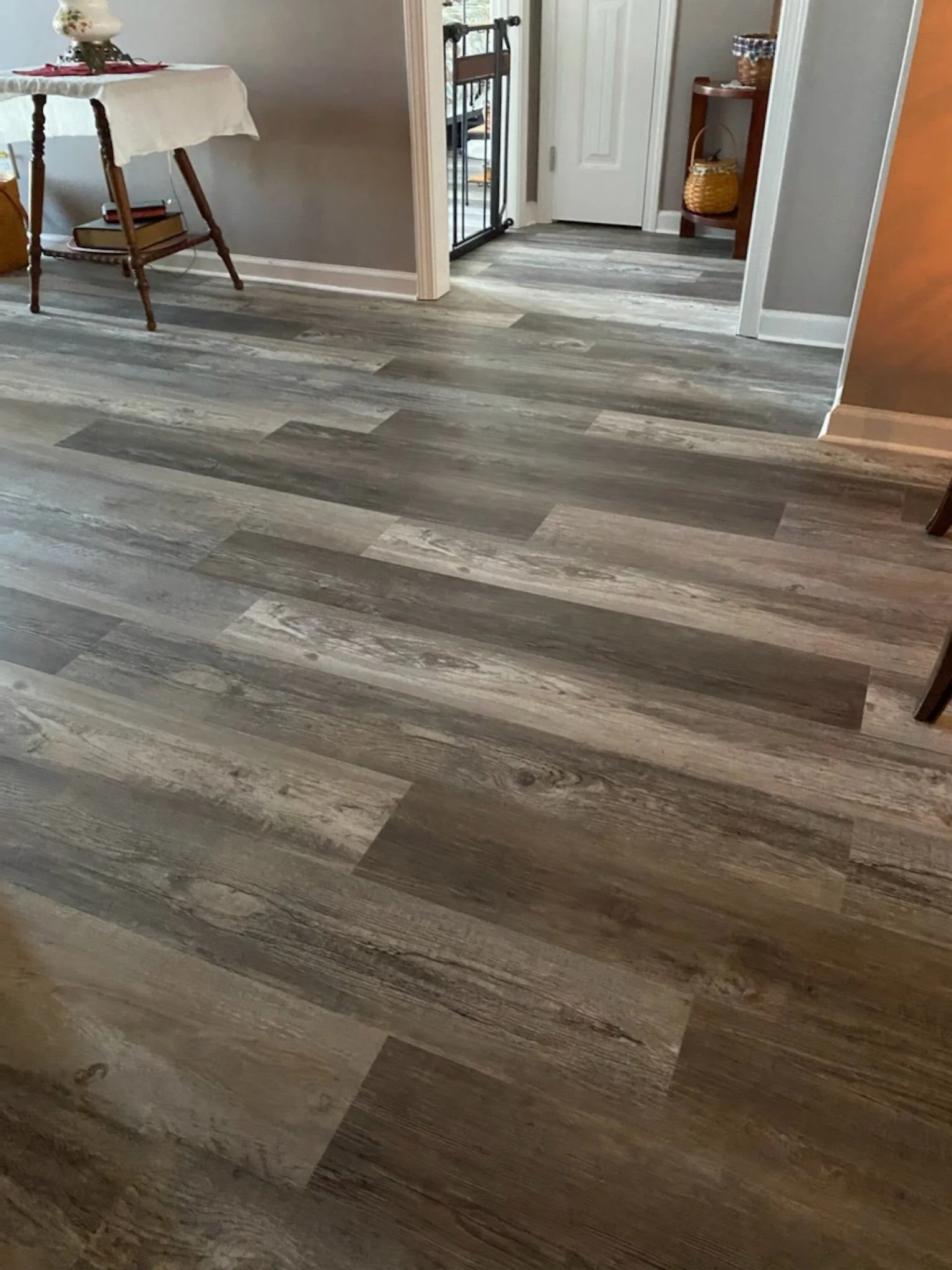 Luxury vinyl click plank flooring. Made up of SPC which stands for Stone-Plastic Composite. These floors have a rigid core infused with limestone, which means they’re ultra-durable and great for high-traffic areas.