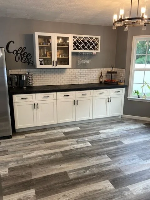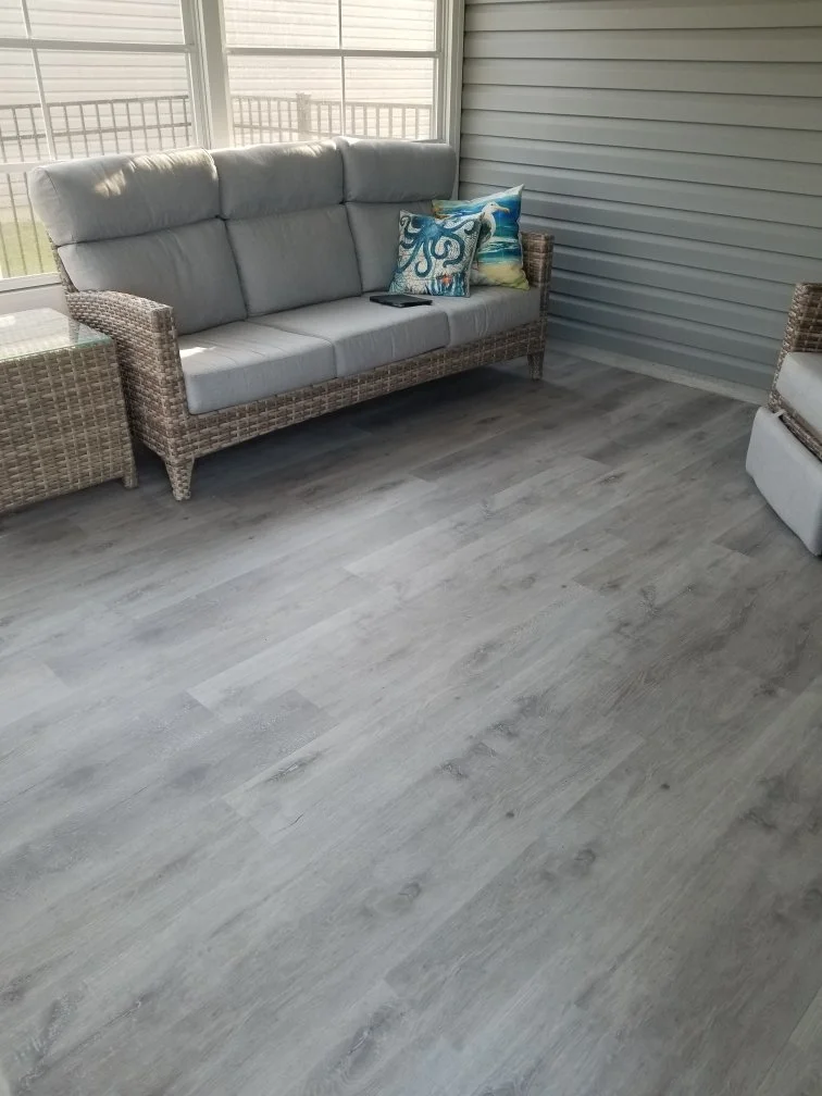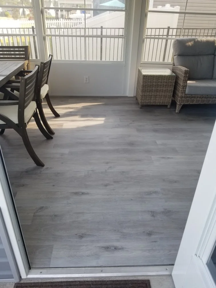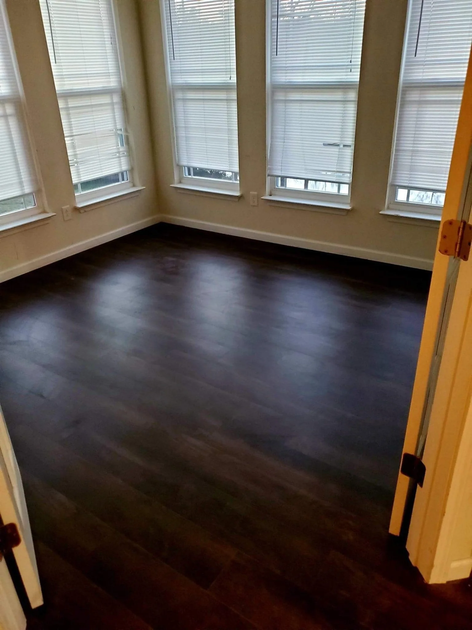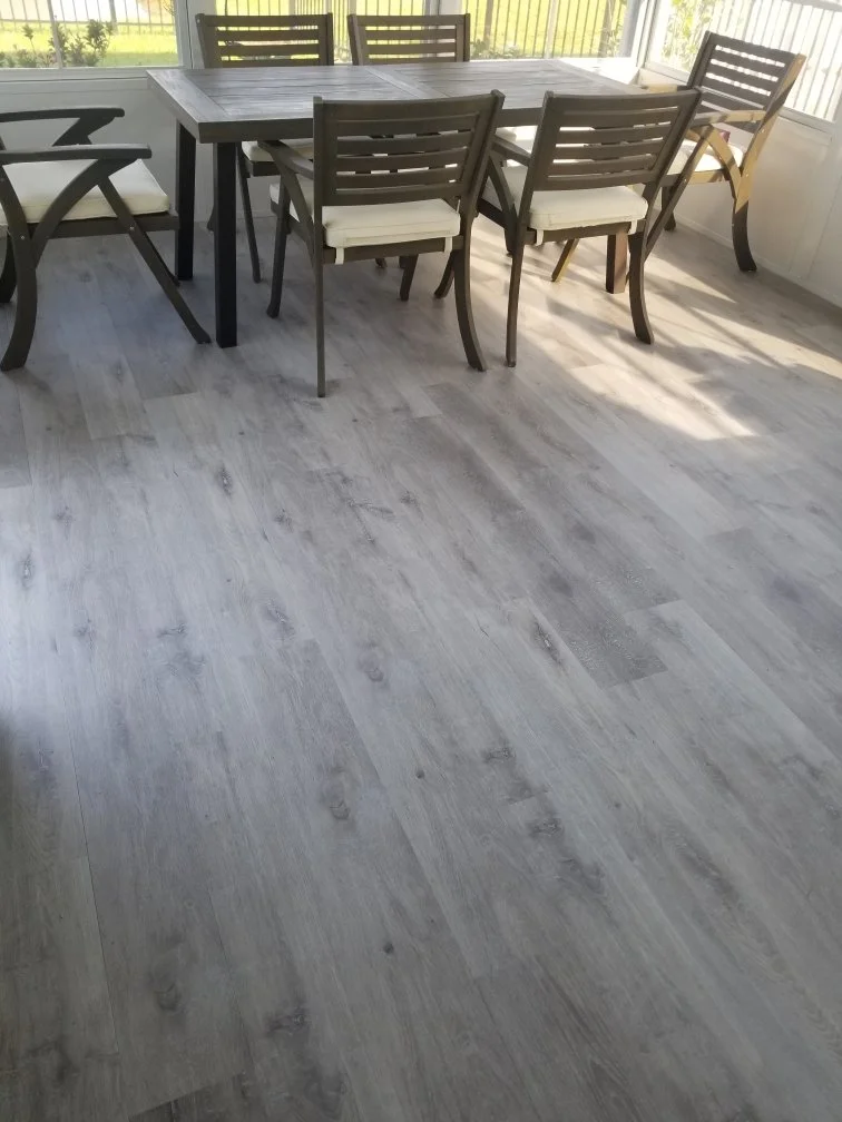 Luxury vinyl click plank flooring. Made up of SPC which stands for Stone-Plastic Composite. These floors have a rigid core infused with limestone, which means they’re ultra-durable and great for high-traffic areas.